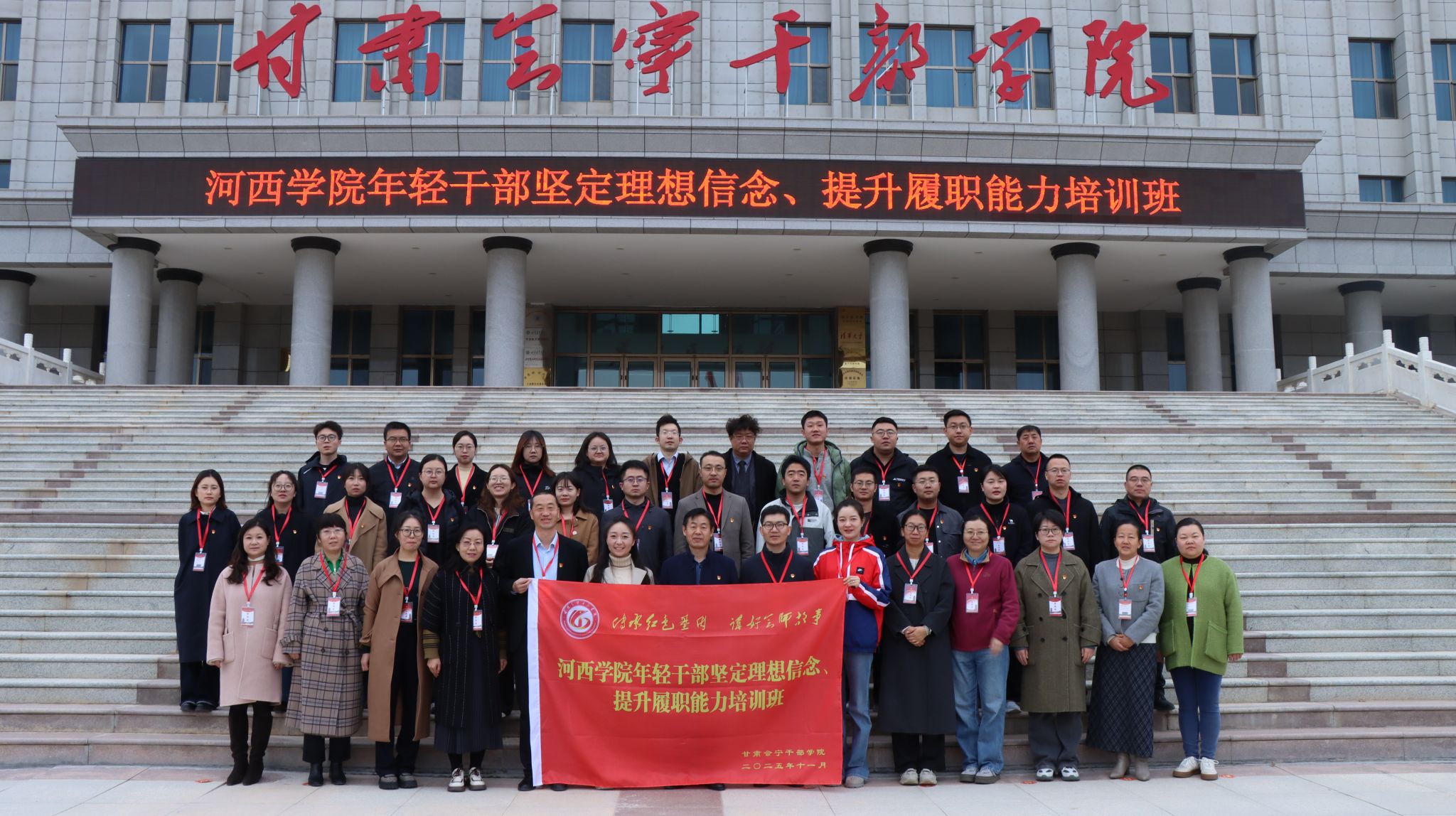 11月2日至7日,学校新提任年轻干部、辅导员共计37人在甘肃会宁干部学院参加为期一周的专题培训。培训以“坚定理想信念、提升履职能力”为主题,重点围绕深入学习贯彻党的二十届四中全会精神、“十五五”时期教育强国战略推进、红色基因传承以及高校青年干部履职能力提升等内容展开,着力打造政治过硬、能力突出的年轻干部队伍。