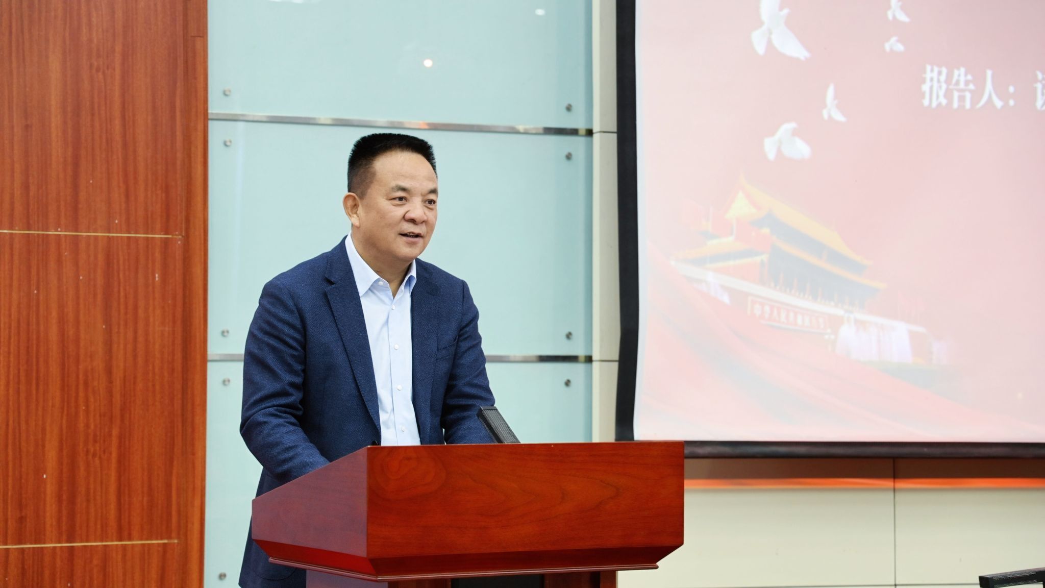 12月4日,读者出版集团党委书记、董事长张斌强应邀来校为师生讲授思政课,引导青年学子坚定文化自信、勇担时代使命。党委书记梁兆光主持报告会。