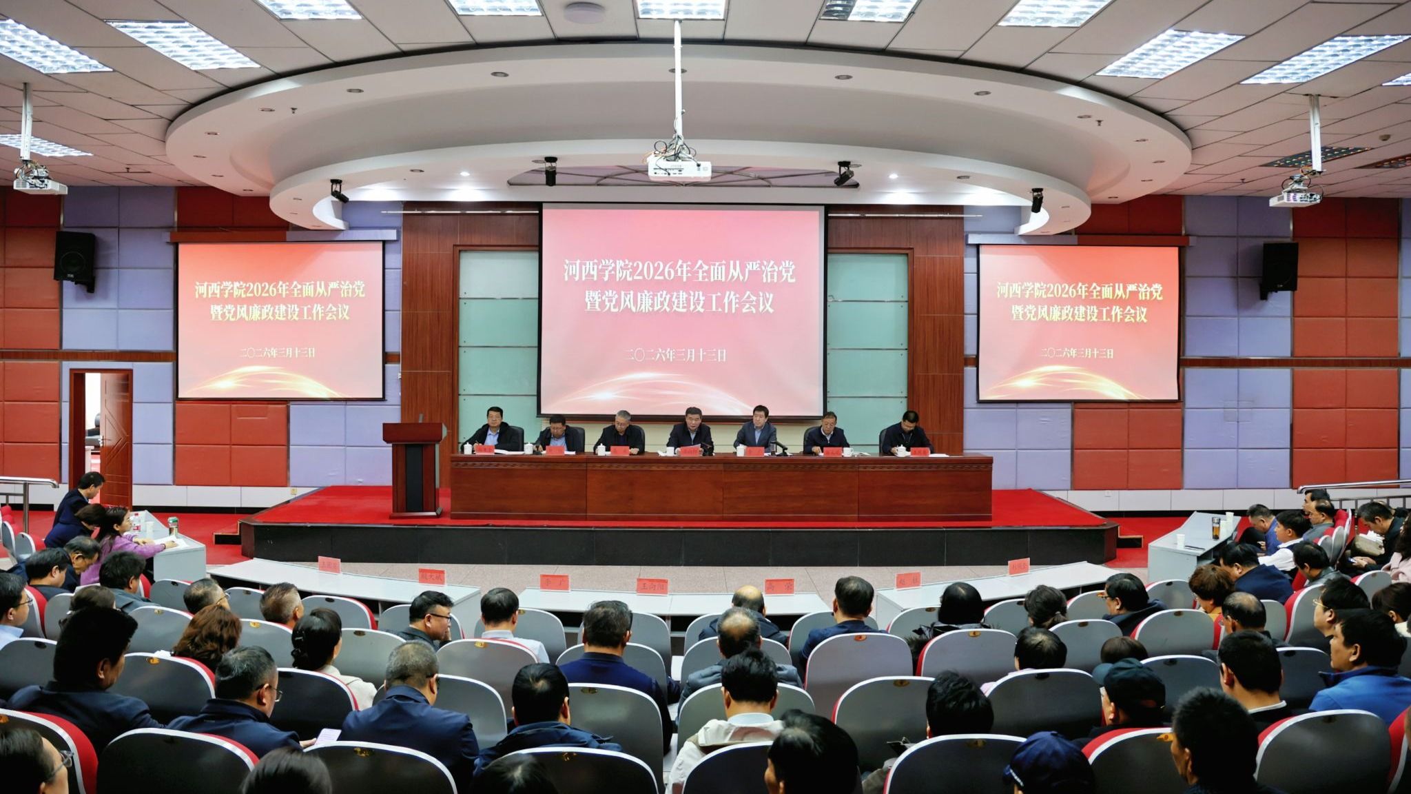 3月13日,学校召开2026年全面从严治党暨党风廉政建设工作会议,传达学习二十届中央纪委五次全会、省纪委十四届五次全会、全省新时代廉洁文化建设动员部署会议以及2026年全国全省教育系统全面从严治党工作会议精神。党委书记王向阳出席会议并讲话。党委常委、纪委书记、监察专员殷大斌安排今年重点任务。党委副书记、校长李广主持会议。