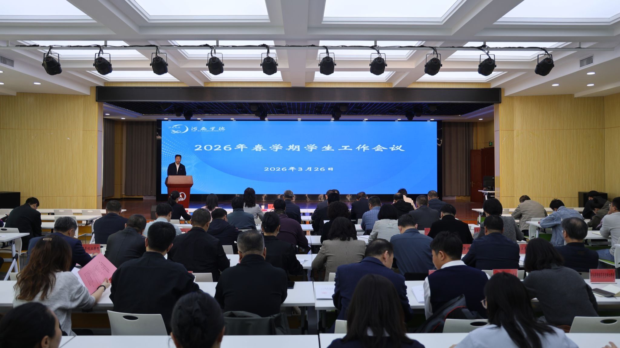 3月26日,学校召开2026年学生工作会议暨“一站式”学生社区工作推进会。党委副书记、校长李广出席会议并讲话。党委常委、副校长王国英主持会议。