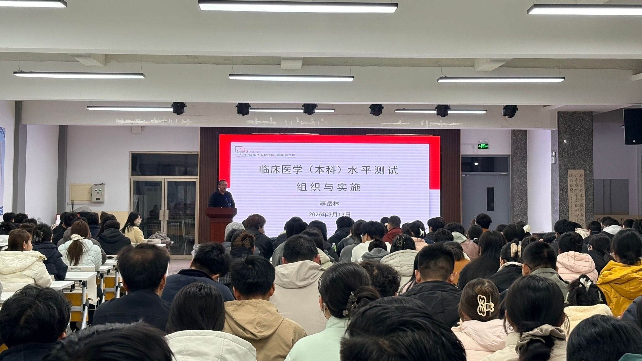 近日,临床医学院组织召开2026年临床医学专业(本科)水平测试动员会。学院负责人主持会议并作动员讲话,全体辅导员及相关教研室教师代表参加会议。