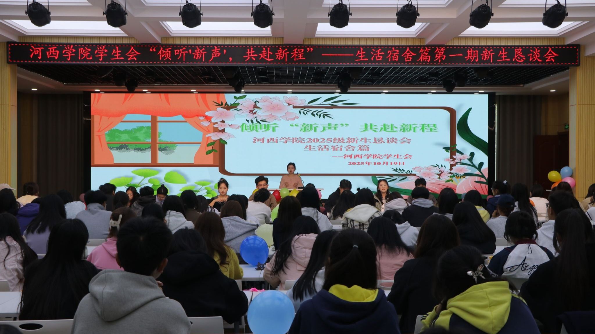 学校学生会“倾听新声、共赴新程”新生恳谈会第一期生活宿舍篇于10月19日在学生发展中心多功能厅举办,来自各学院优秀学生代表和200余名2025级新生代表现场座谈交流。