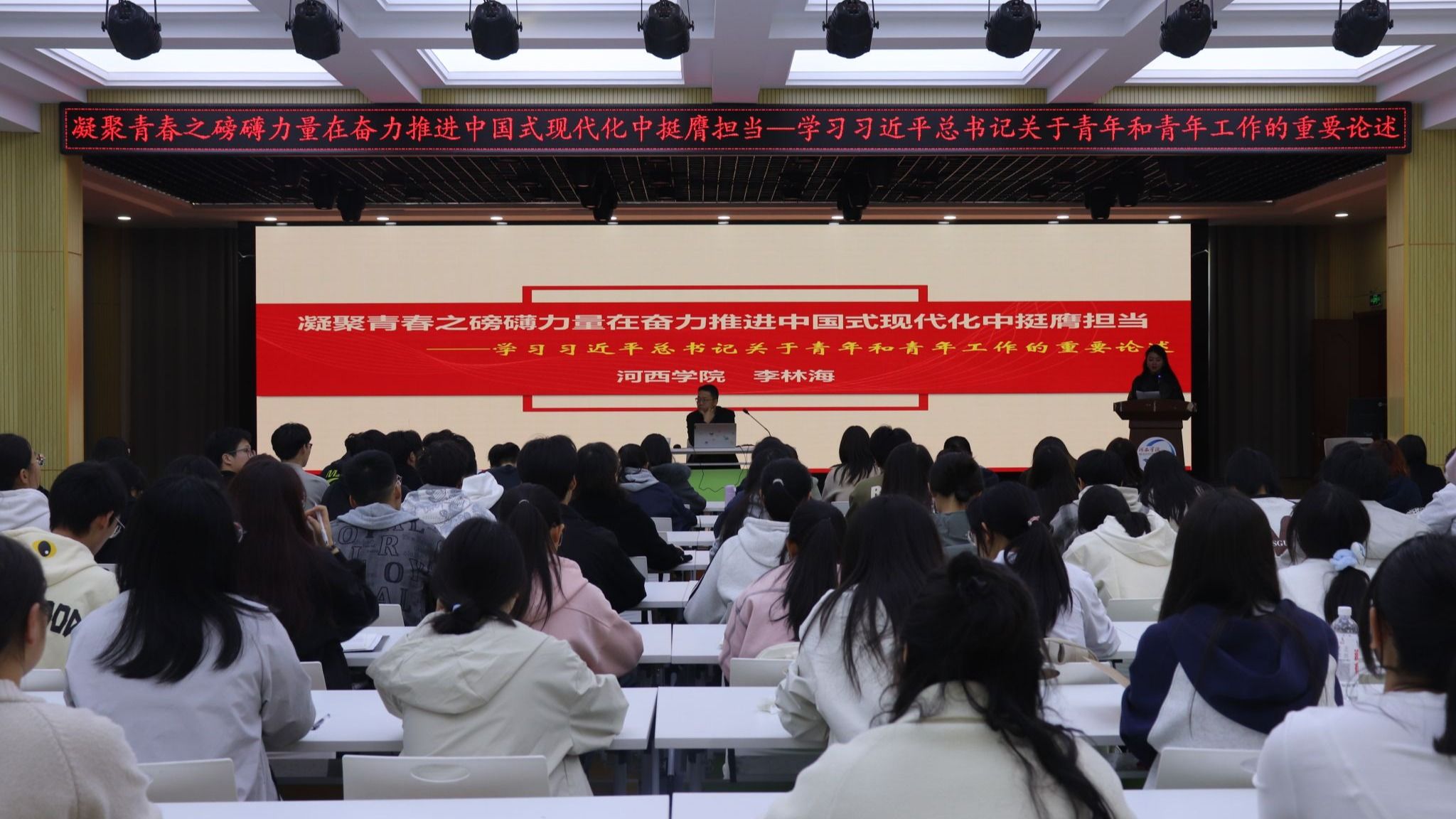 近日,学校第九期“青马工程”培训班开展理论宣讲。党委统战部常务副部长、红西路军研究院院长蔺海鲲教授,马克思主义学院张正琴副教授、李林海副教授为培训班授课。182名“青马学员”聆听。