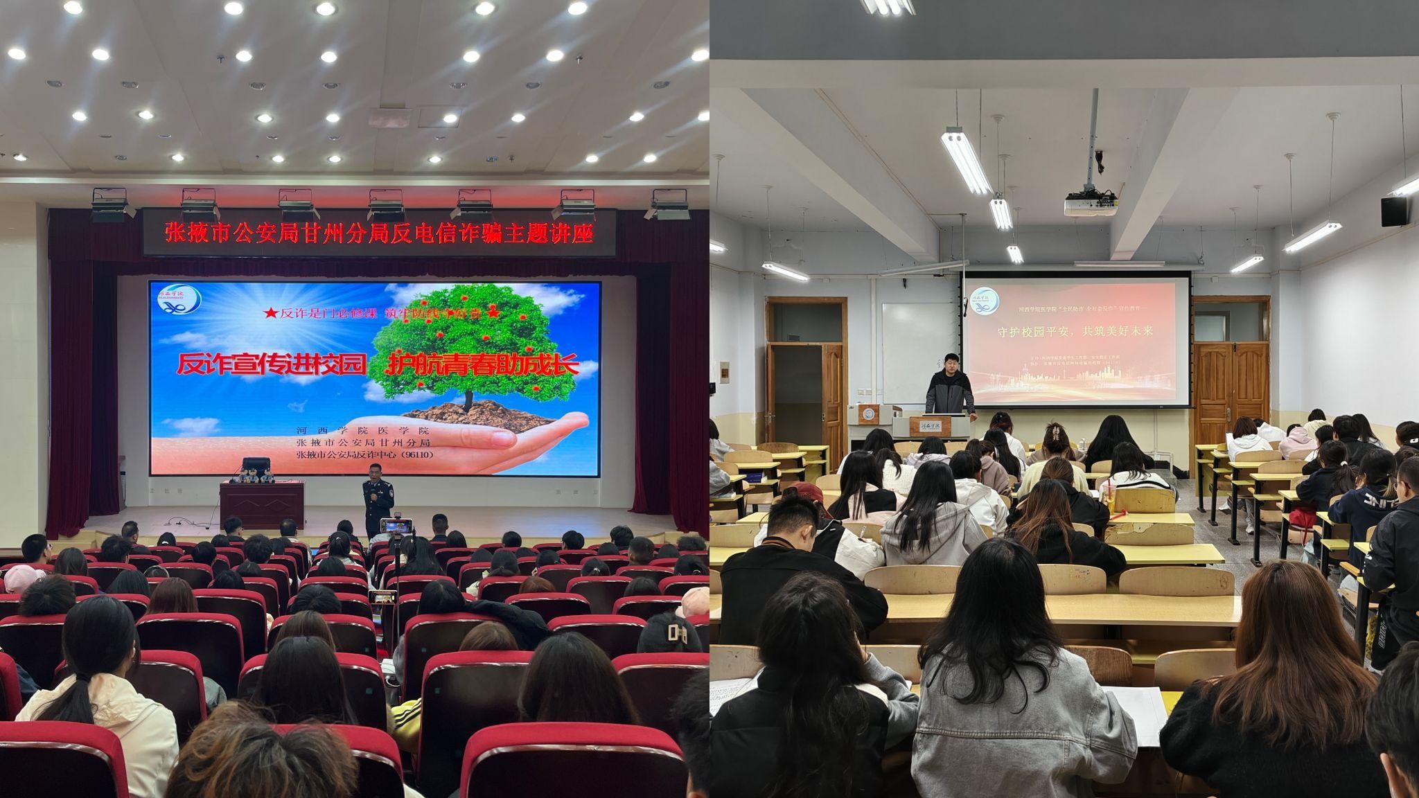 10月26日,学院特邀张掖市公安局甘州区分局朱万军警长走进校园,为全院学生开展了一场题为“反诈宣传进校园·护航青春助成长”的反电信诈骗主题教育讲座。朱警长结合丰富的一线办案经验,通过分析多起发生在大学生身边的真实案例,以案说法,针对在校大学生群体特点,进行了精准化的反诈知识普及。活动采用“线下主会场+线上直播”相结合的方式,实现了宣传教育全覆盖,取得了良好效果。