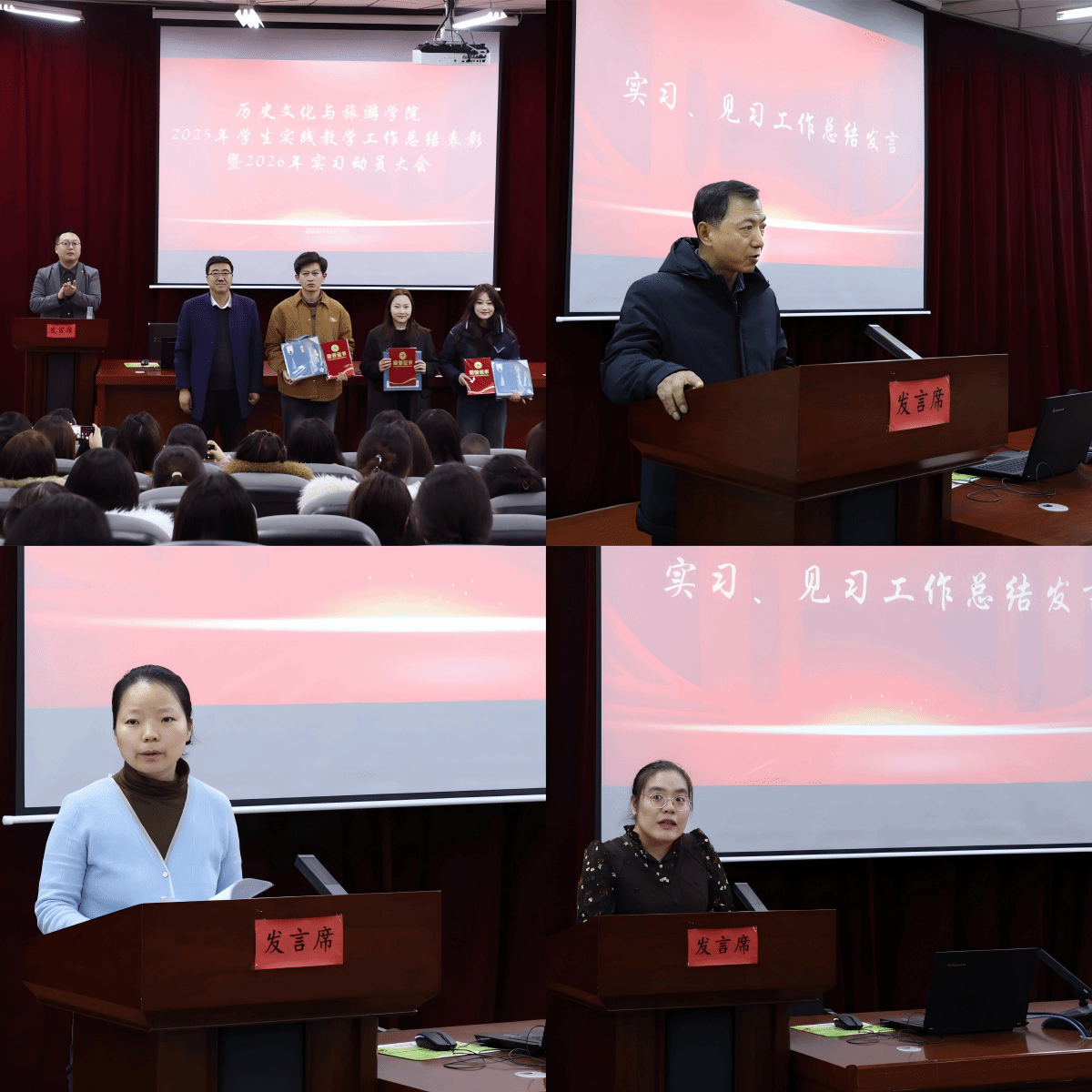 12月4日,历史文化与旅游学院召开2025年实践教学工作总结表彰暨2026年实习动员大会。学院负责人主持会议,2022级、2023级各专业全体师生共计300余人参加会议。
