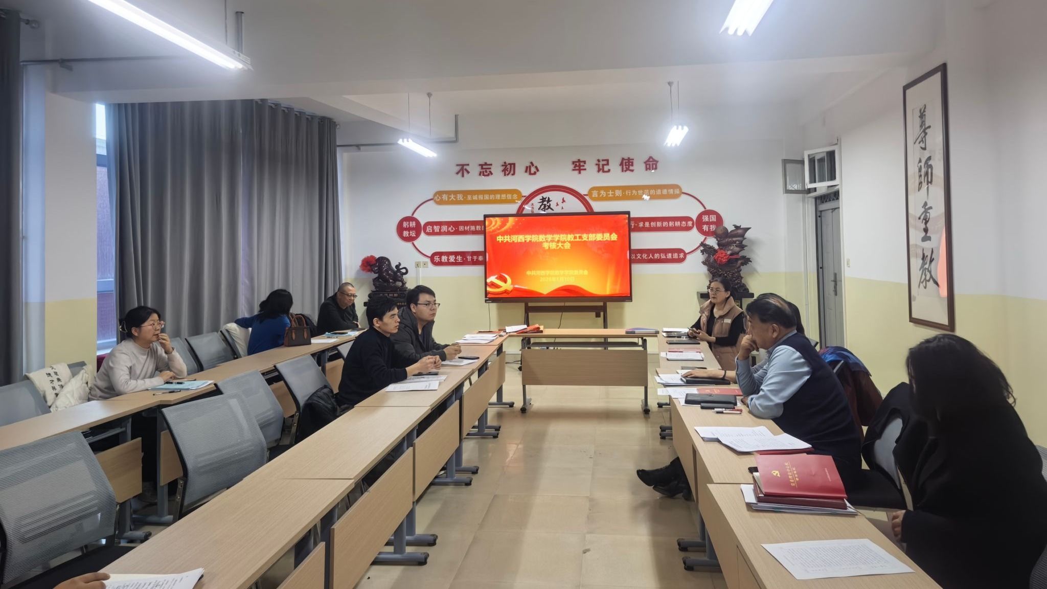 1月10日,数学学院召开2025年度党支部述职评议考核大会。学院党委委员和全体教工党员参会,学院党委书记主持会议。