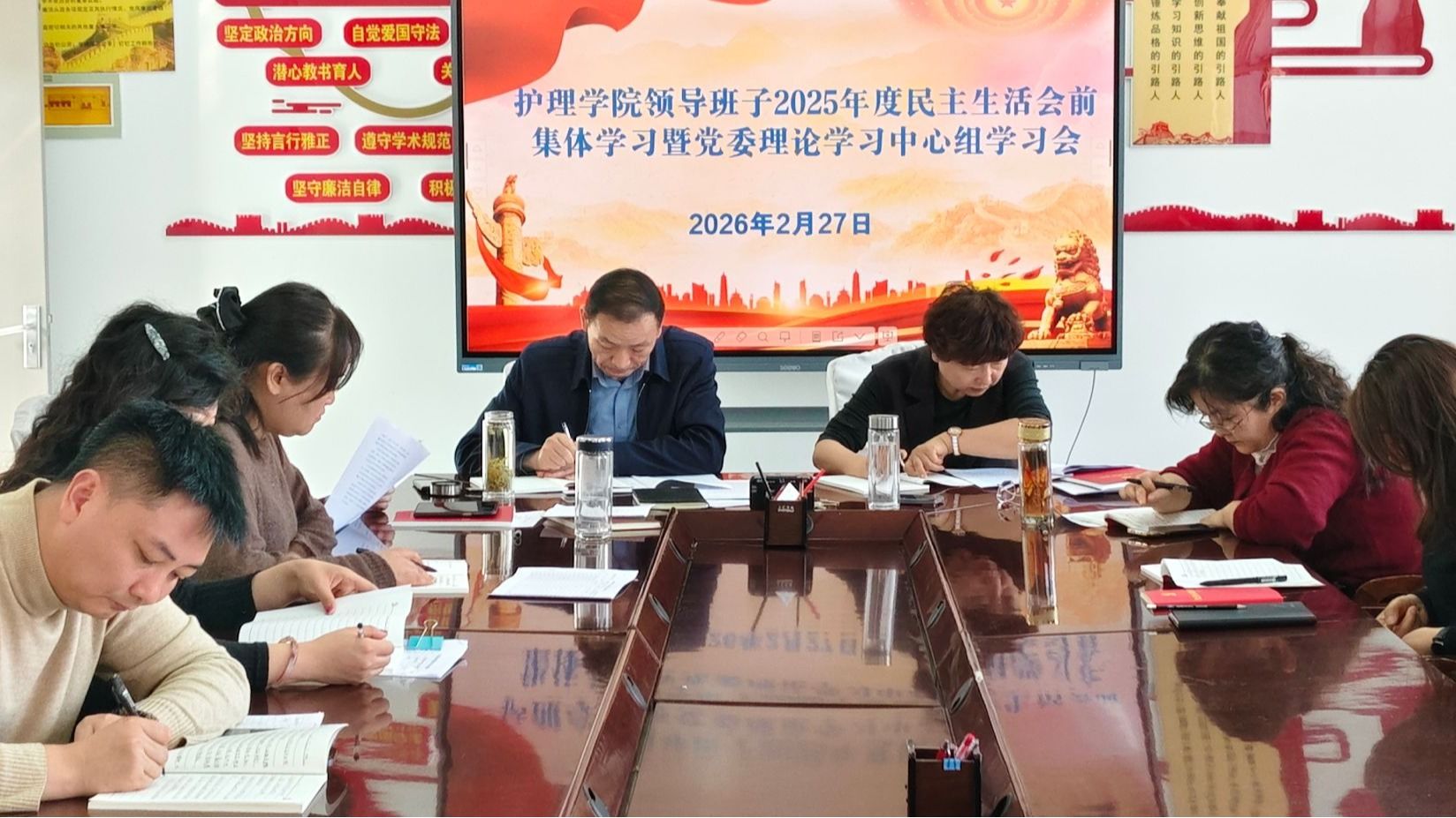 2月27日,护理学院召开2025年度民主生活会前集体学习暨党委理论学习中心组学习会,学院党委负责人主持会议,党委理论学习中心组成员全员参加会议。