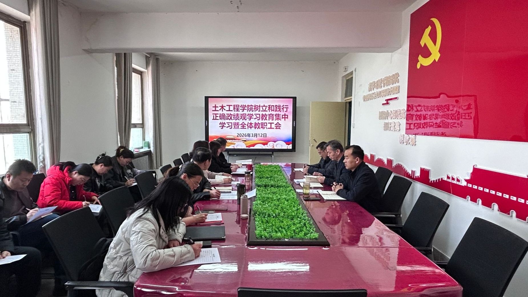 近日,土木工程学院召开树立和践行正确政绩观学习教育集中学习暨全体教职工会议,学院全体教职工参加,党委负责人主持。