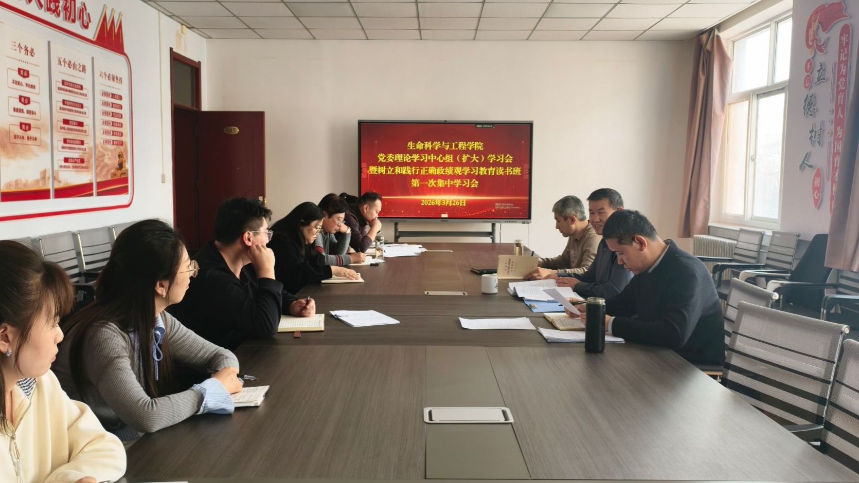 3月26日,生命科学与工程学院召开党委理论学习中心组(扩大)学习会暨树立和践行正确政绩观学习教育读书班第一次集中学习会,学院党委理论学习中心组成员、学院行政工作人员、师生党支部书记参加。