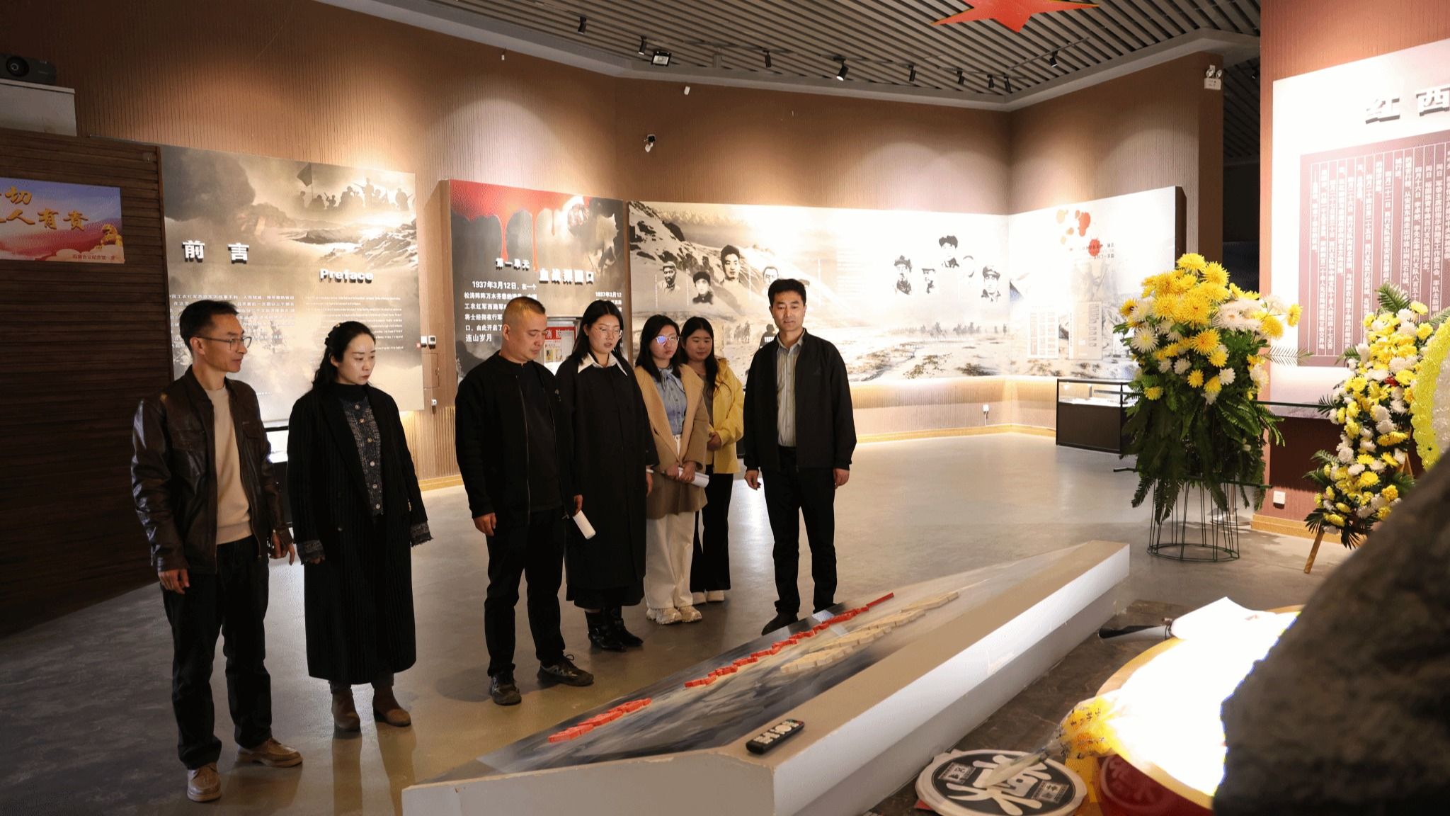 活动现场庄严肃穆,全体人员向革命先烈鞠躬默哀,深切缅怀红西路军革命先烈,寄托哀思与崇高敬意。在讲解员引导下,大家参观纪念馆展厅,通过历史照片、文物及史料,重温红西路军转战祁连、浴血奋战的峥嵘岁月,深入了解1937年石窝会议的重要历史意义,真切感悟革命先辈坚守信仰、不畏牺牲的崇高精神。