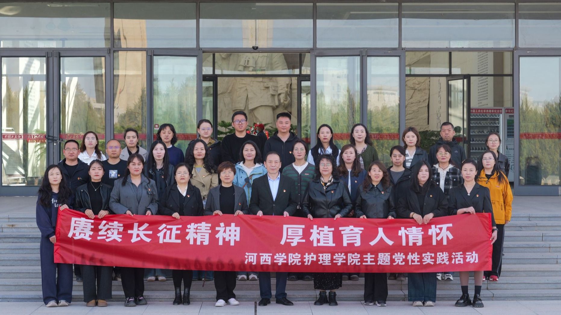 近日,护理学院赴高台中国工农红军西路军纪念馆、甘肃高台干部学院,开展“赓续长征精神,厚植育人情怀”主题党性实践活动,全院30余名教师参加。
