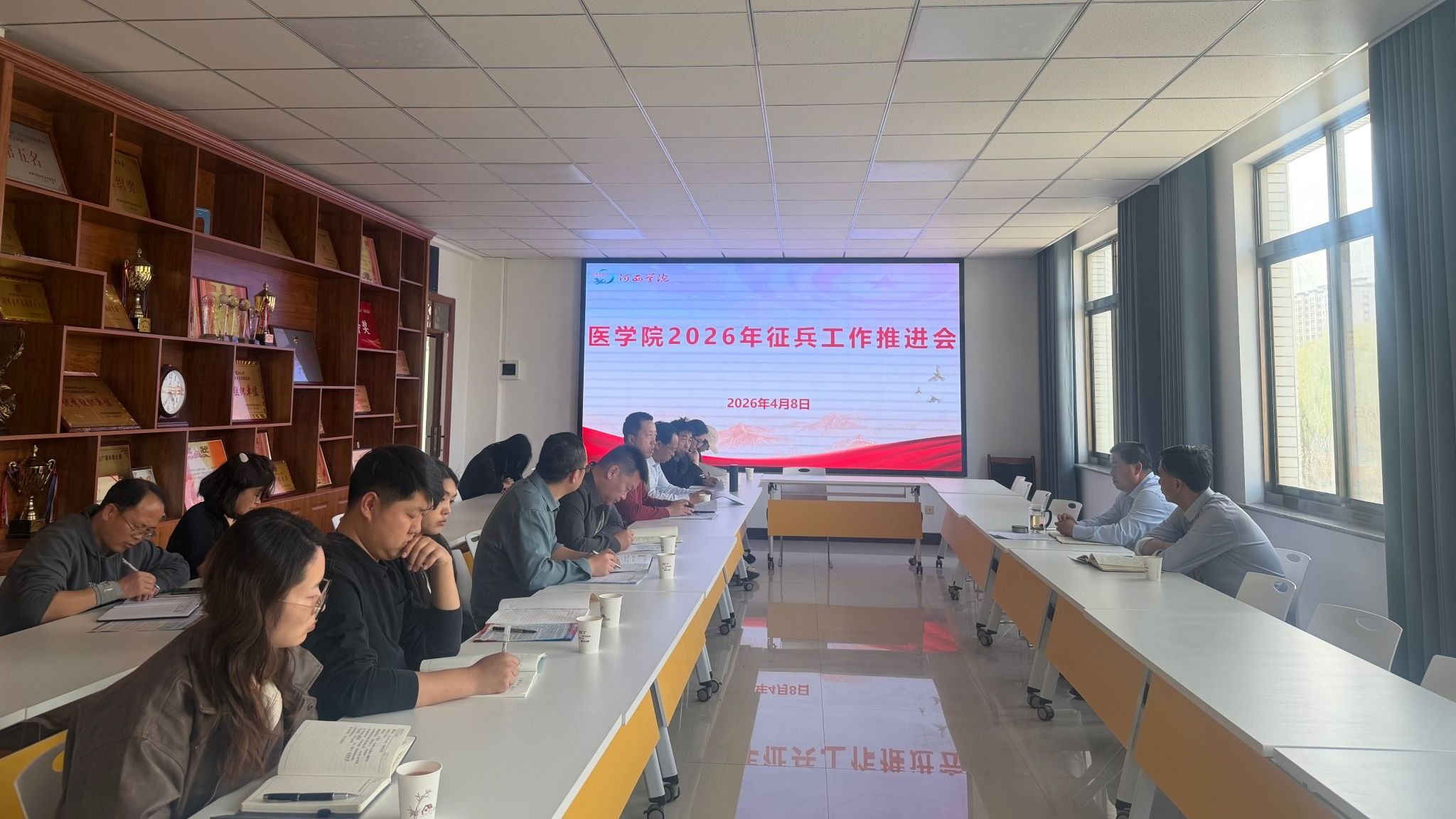 4月8日,医学院召开2026年征兵工作推进会,学院负责人、各办公室(中心)负责人、2026届毕业班班主任、全体辅导员参加。