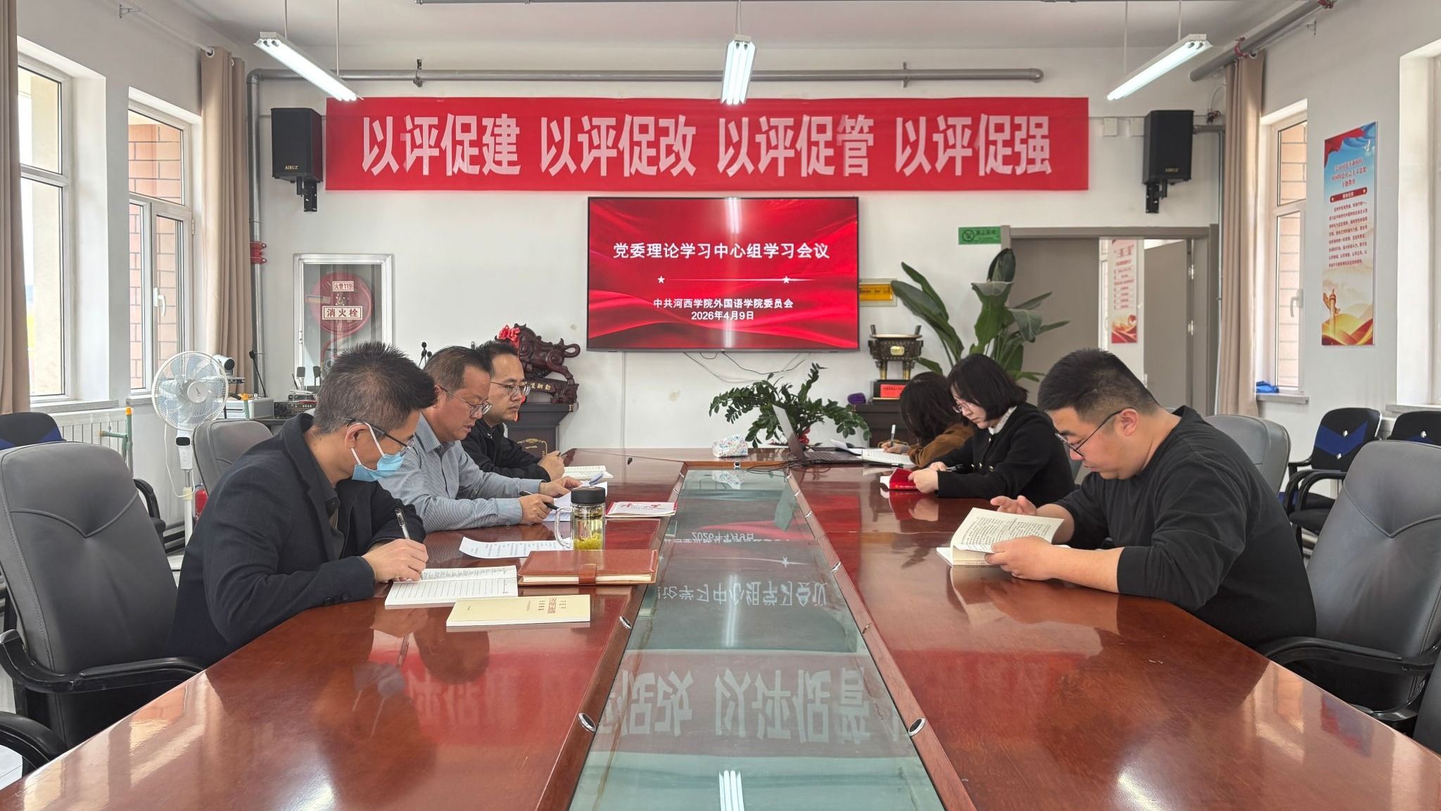4月15日,外国语学院召开党委理论学习中心组学习会,专题研讨推进学习教育工作,学院党委理论学习中心组成员参加。