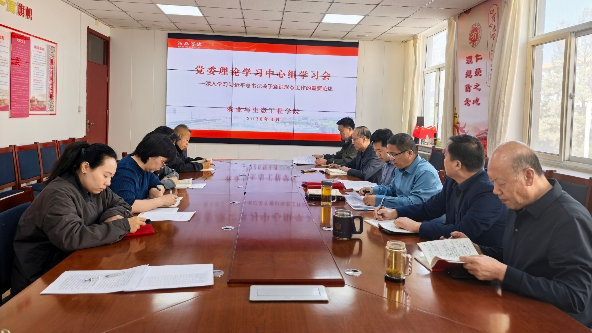 会议集中学习了习近平总书记关于意识形态工作的重要论述及《习近平关于树立和践行正确政绩观论述摘编》部分重要篇目,传达学习了《中共河西学院委员会意识形态工作责任制实施细则》等文件精神。许静雯、陈芳芳同志作交流发言。