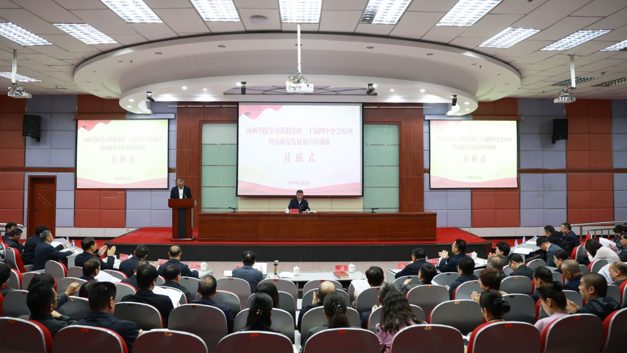 4月1日上午,河西学院处级干部学习贯彻党的二十届四中全会精神暨高质量发展集中培训班开班,党委书记王向阳出席开班式并讲话,党委副书记高荣主持开班式。