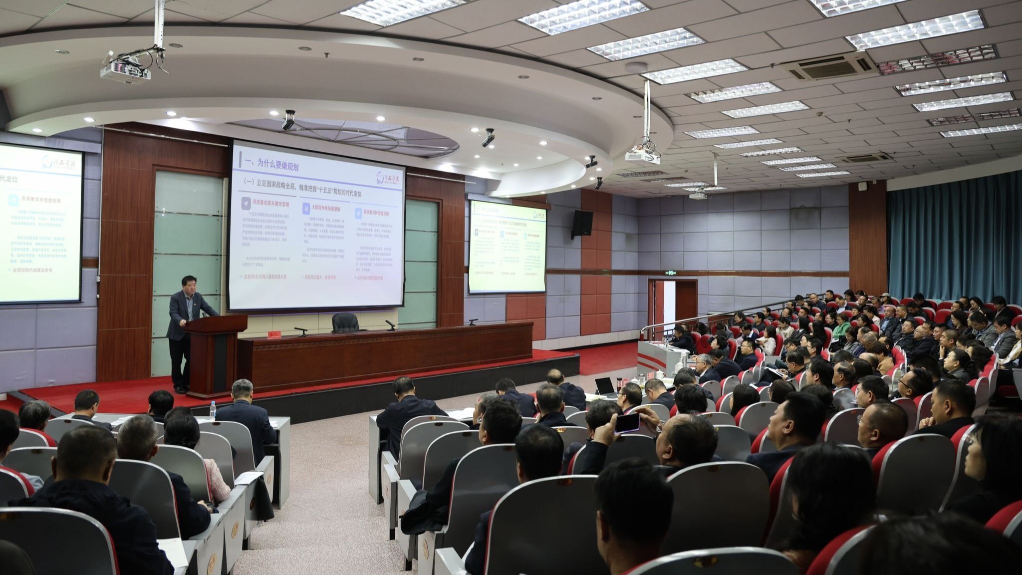 报告中,李广紧扣学校建设特色鲜明的应用型大学、内涵式高质量发展、抢抓战略机遇等三大战略任务,立足国家“十五五”规划对高等教育发展总体要求,聚焦与高校密切相关的五大核心领域与六大重点方向,围绕学科专业建设、科研创新工作、人才队伍建设、人才培养与就业等重点规划任务,从“为什么要做规划”“国家十五五规划纲要解读”“学校十四五规划编制与完成情况”“学校十五五规划思考”四个方面进行了深入剖析和系统阐释。报告既是对党的二十届四中全会精神的系统辅导,也为学校未来发展提供了深层思考与清晰定位。