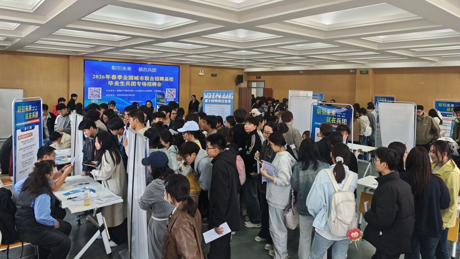 据悉,本次专场招聘会汇聚了新疆生产建设兵团十个师的52家企事业单位,涵盖多个行业领域,共提供就业岗位300个,招聘需求人数达790名。活动期间,现场毕业生累计投递简历1030份,达成意向签约548人。