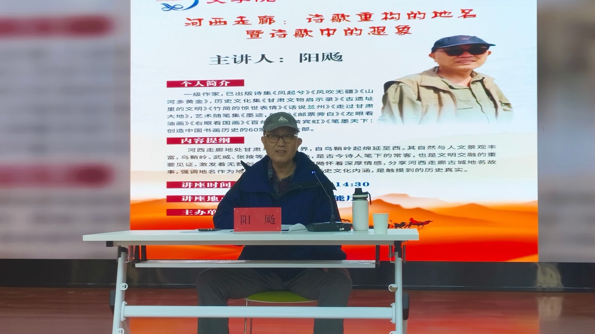 10月16日,一级作家阳飏应邀来学校文学院作了题为“河西走廊:诗歌重构的地名暨诗歌中的想象”的专题讲座。文学院师生代表参加。