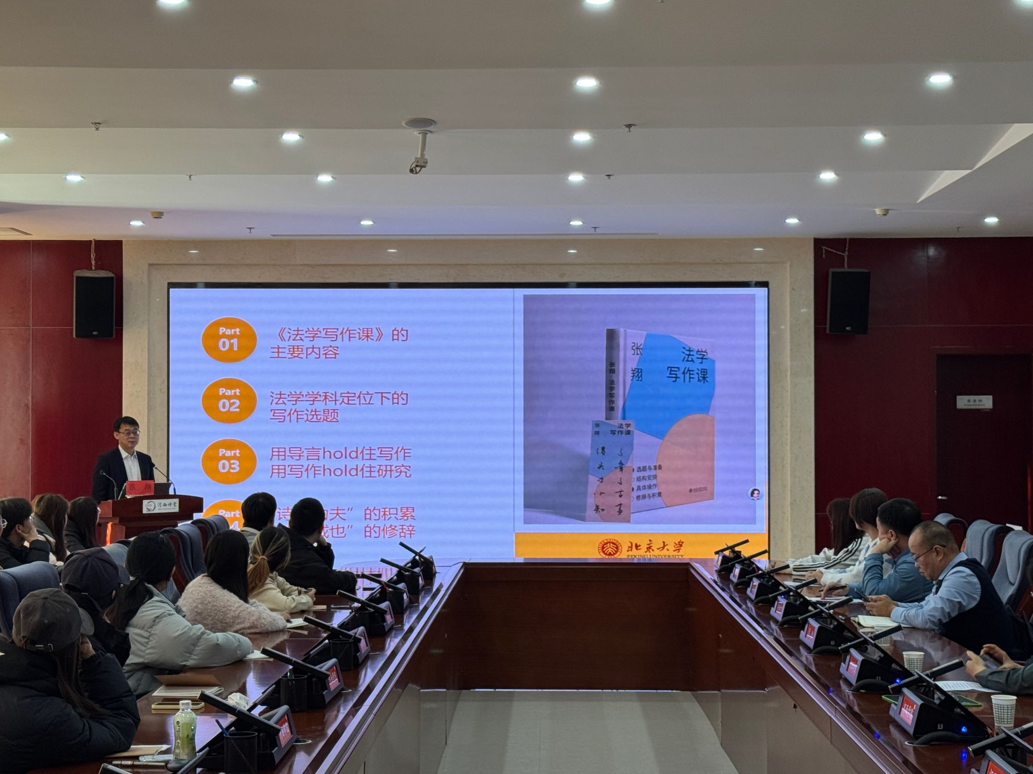 张翔教授以自身实践和多年课程教学为基础,以法学作为规范科学和实践科学的学科定位为起点,系统阐述了法学论文写作的全过程。他重点围绕选题来源、结构安排、写作操作与学术积累四个方面展开讲解,强调选题应根植于实践、规范与理论三大来源,鼓励学生在动笔前做好充分的文献与案例准备。尤其要重视论文的“导言”部分,认为其不仅能够统摄全文,更能通过写作过程反向推动研究的深刻化与系统化。讲座内容系统深入、贴合实际,受到与会师生的热烈欢迎和高度评价。