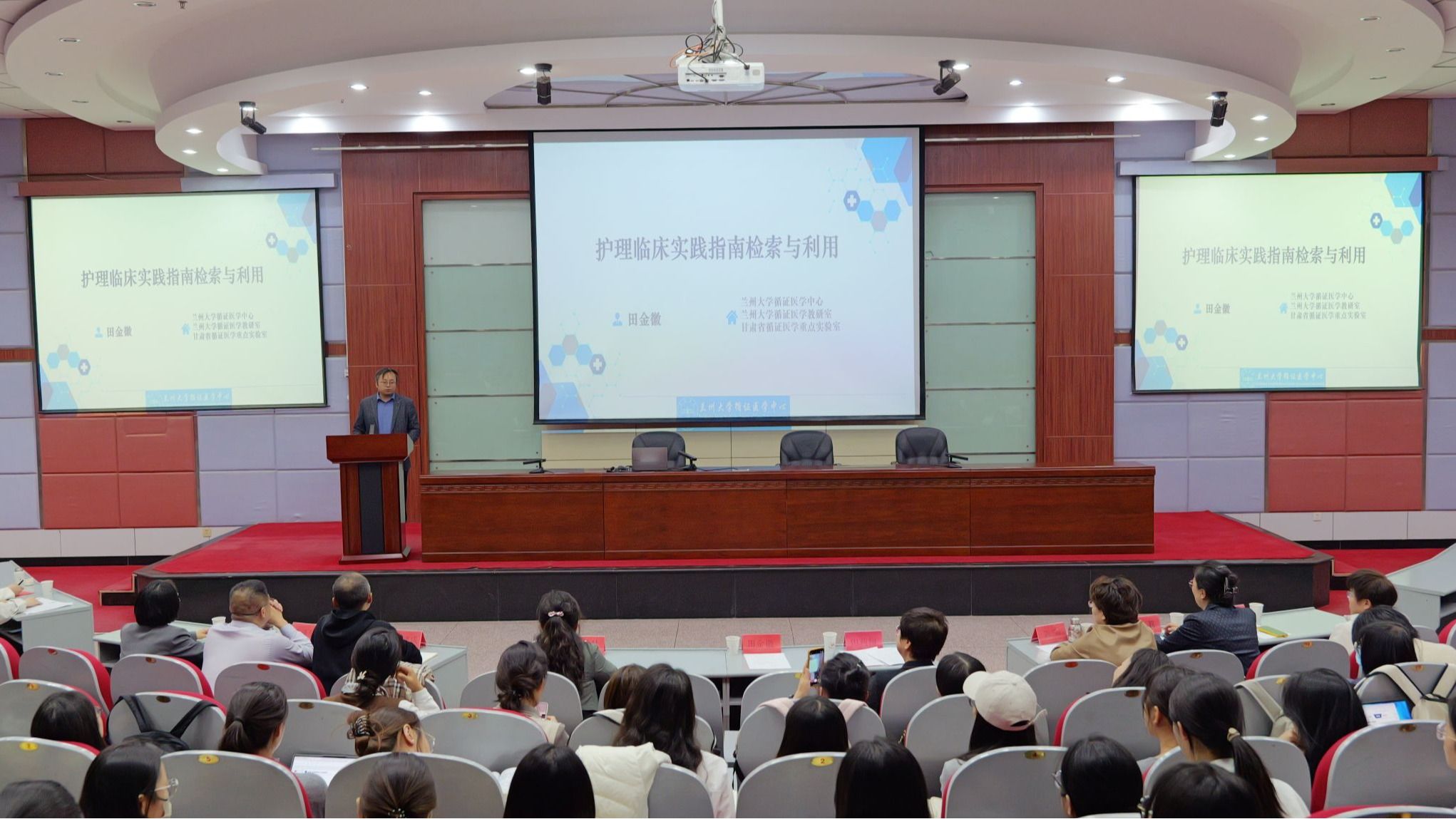 报告中,田金徽教授围绕临床实践指南全流程体系展开系统讲授,内容涵盖指南分类、评价、制定、检索与转化应用,重点介绍了国际与国内主流指南评价体系,分享了国内外权威指南数据库、系统评价检索平台及高效检索策略;同时,结合国家护理事业发展规划与“人工智能”政策导向,解读护理指南在政策支持、证据升级、精准需求、数字赋能下面临的新机遇。整场报告将循证医学方法学、护理科研规范与临床场景深度融合,师生认真聆听、积极互动,不仅提升了师生对护理临床实践指南的认知水平、检索能力与循证应用素养,更点燃了同学们投身循证护理研究的热情。