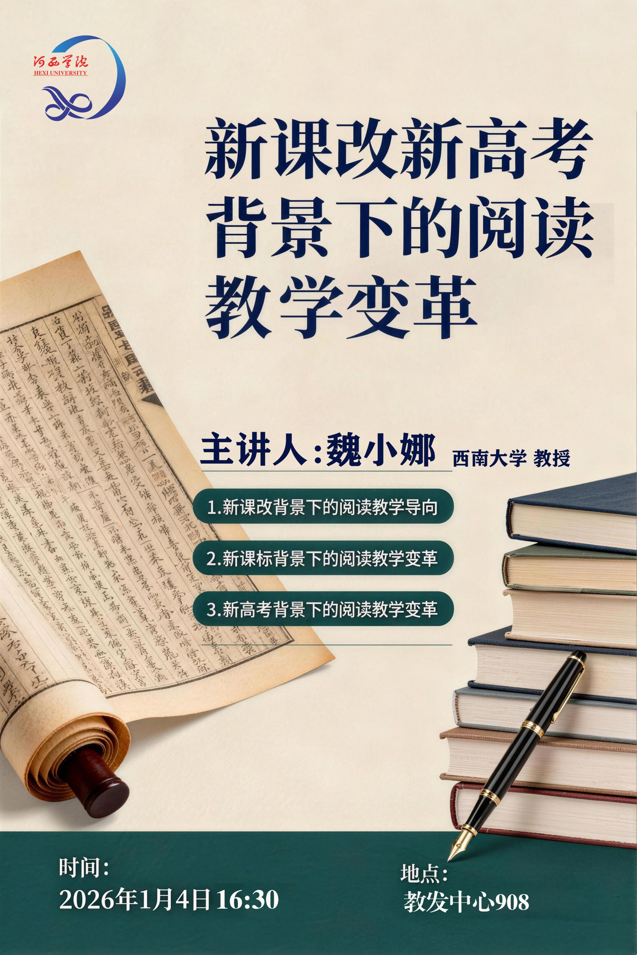 【学术报告】西南大学教授、博士生导师 魏小娜 | 新课改新高考背景下的阅读教学变革