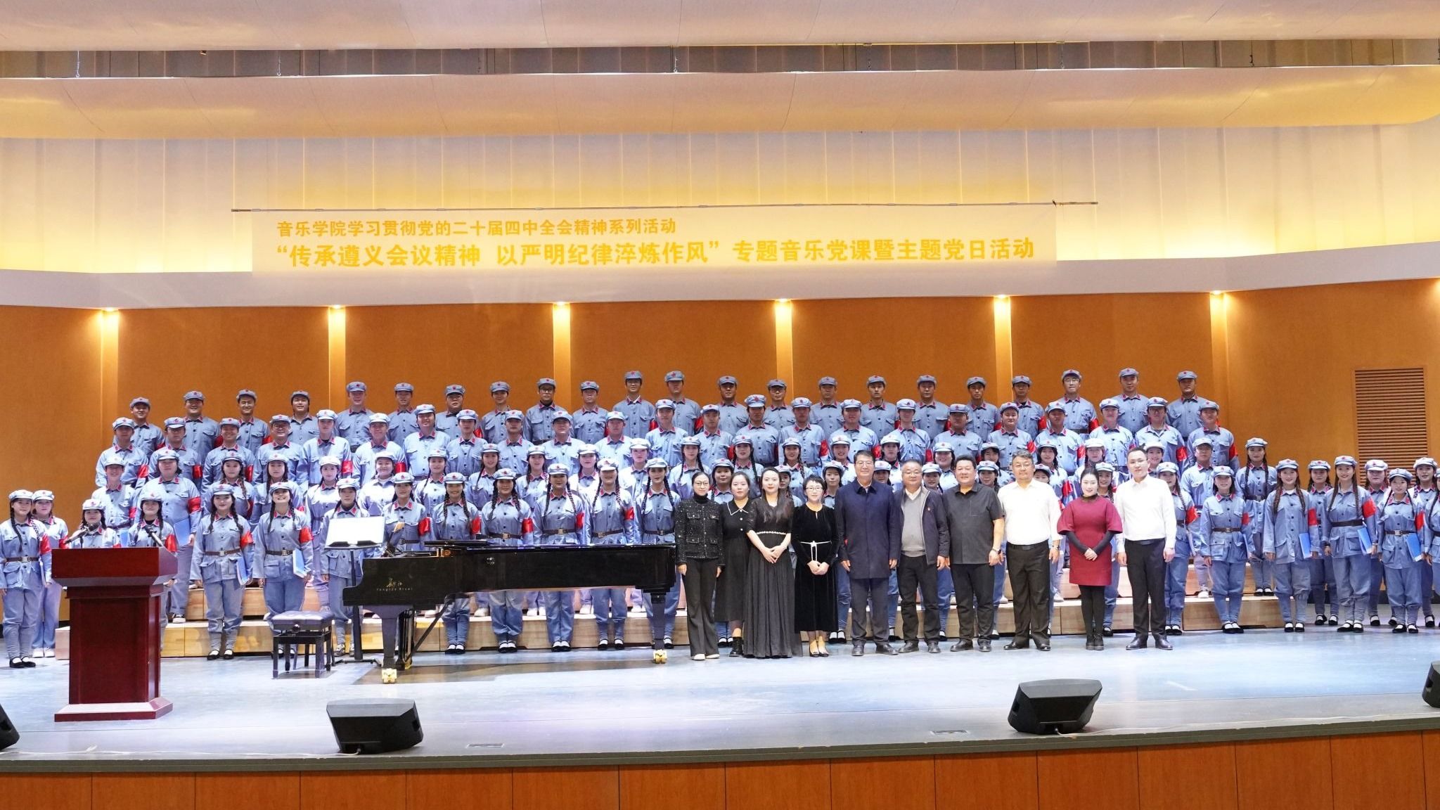 11月6日,音乐学院以“音乐+党课”的创新形式,举办以“传承遵义会议精神 以严明纪律淬炼作风”为题的音乐党课暨主题党日活动。党委常委、副校长、组织部部长杜明奎,党委常委、宣传部部长褚建霞出席指导。学校相关部门负责人、部分学院师生党员代表等400余人参加活动。党课由音乐学院党委委员、器乐教研室主任张宁副教授主讲,通过“历史的转折”“信仰的旋律”“新时代的长征”“誓言与征程”四个篇章层层推进,以红色旋律为载体,...