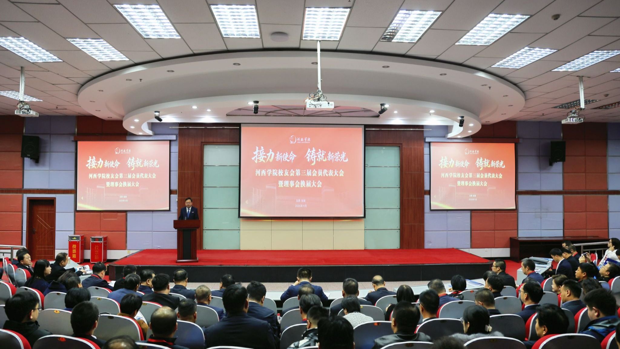 11月8日,河西学院校友会第三届会员代表大会暨理事会换届大会在图书馆报告厅举行。党委书记梁兆光、校长李广等在家全体校领导、校友代表、二级学院代表、机关各部门代表、学生代表162人参加大会。会议由党委常委、副校长唐志强主持。会上,校友工作办公室负责人汇报了本次大会的筹备情况并介绍了新一届理事会理事候选人情况;上一届理事会副会长杜明奎作了校友会第二届理事会工作报告;理事会副会长王德作了《甘肃省河西学院校友会章程》...